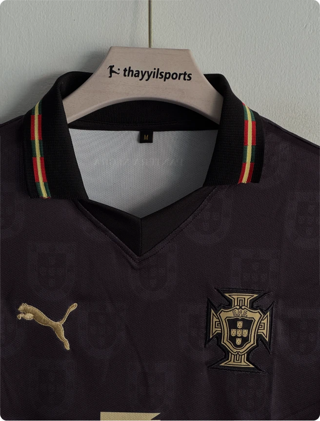 PORTUGAL 25-26 BLACK KIT RONALDO POLO EMBROIDERY PREMIUM